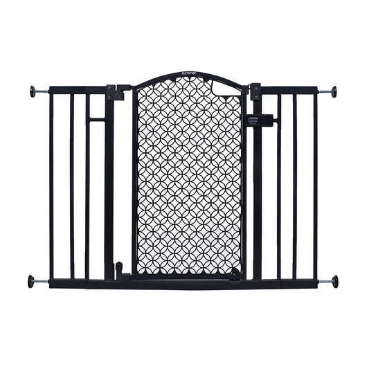 Summer Infant Modern Home Walk-Thru Safety Pet and Baby Gate, 28"-42" Wide, 30" Tall, Pressure or Hardware Mounted, Install on Wall or Banister in Doorway or Stairway, Auto Close Door - Gray